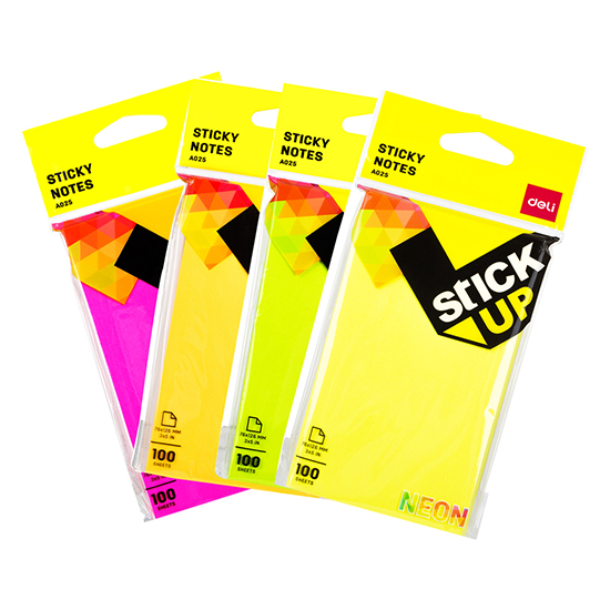 Deli Stick Up Sticky Notes Poly Bag 76*126mm 3″x5″ 100 Sheets Assorted Colore